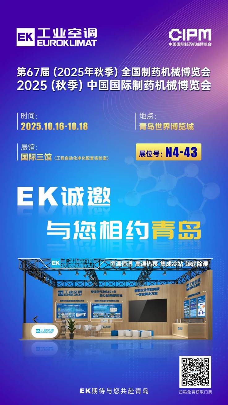 这是一次思想碰撞的交流机会,也是一场探索前沿方案的技术盛宴。EK工业空调已准备就绪,期待在展会现场与您深入交流,共话制药行业可持续发展。
