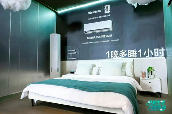 海信新风空调深睡宝X5致力改善用户睡眠质量,首创性配备CO₂传感器,实时监测空气质量,联动新风功能将CO₂浓度稳定控制在800ppm以下,确保整夜清新呼吸。