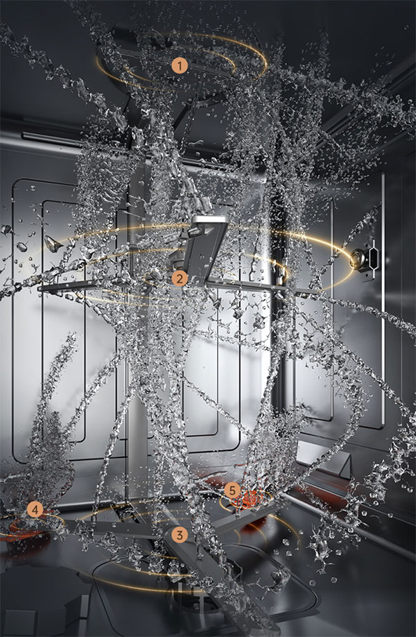 樱花洗碗机W1606以强势除菌和全域净洗为核心,将四层五喷臂立体喷淋与360°强劲冲刷结合,确保餐具里外、上下无一遗漏。75℃高温漂洗,迅速分解厚重油污。全水道银离子抗菌,严守健康安防线,真正呵护全家饮食健康。
