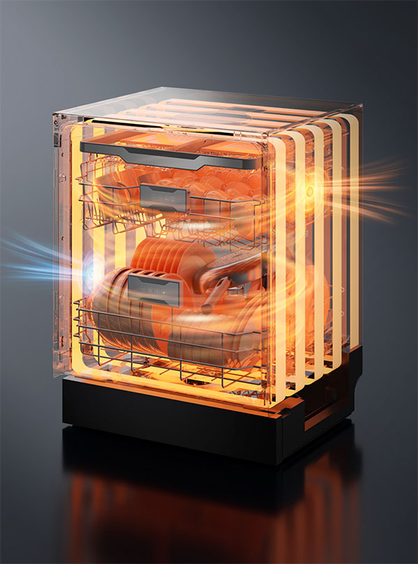 搭载PTC速干技术与大风机干燥系统,樱花洗碗机W1606使碗具快速干爽,冷热风交替烘干与168小时换气鲜存功能,则能长久保持柜内干净、抑菌与清新,即使旅行归来,亦能放心取用。