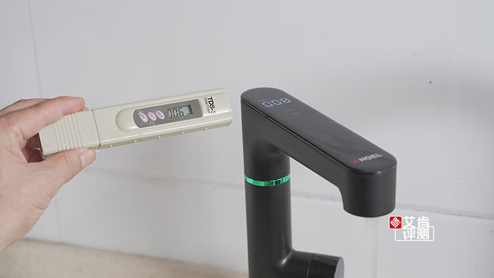为了验证准确性,我们也使用自己的测试笔测试了从龙头刚出来的水。结果显示TDS测试笔与安吉尔玉龙净水器自带的测试值相近,安吉尔玉龙净水器的“第一杯水”符合纯净水的标准。