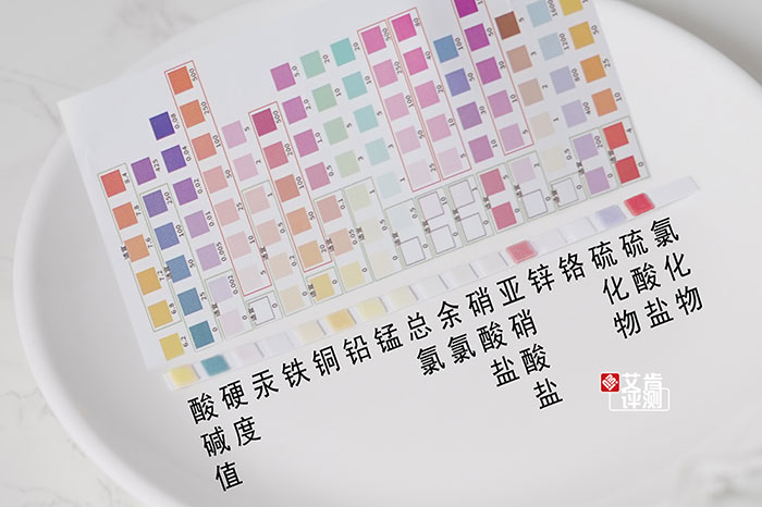 对比色卡可见,净化水酸碱值与硬度适中,汞、铁、铜、铅等 11 种重金属均未检出,总氯、余氯、氯化物通过色卡对比也基本在0,无论是直接饮用还是洗菜、淘米,都能放心使用。