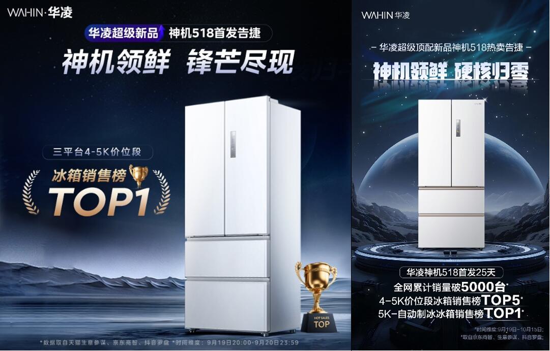 2025年双11,家电市场再度掀起腥风血雨。这一次,搅动风云的依然是那个“不按常理出牌”的华凌。华凌神机518冰箱一经发布,便在京东、天猫、抖音三大平台4-5K价位段冰箱销售榜上强势登顶,首发即斩获多平台TOP1,更在双11期间持续霸榜5K价位段自动制冰冰箱销售榜第一,以“屠神”之姿将万元级配置拉至4000元档,既震动行业,更让消费者直呼“真香”。