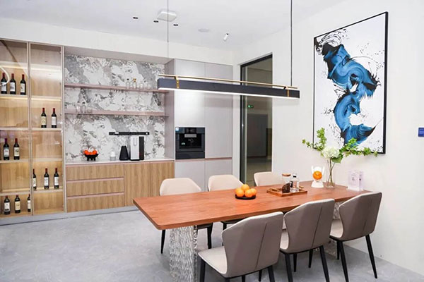在餐厅,一键就能唤起个性化灯光、音乐的用餐氛围。