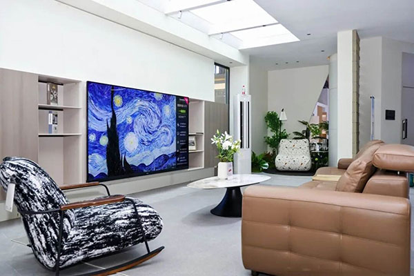 在客厅,电视化身智能中心,就连洗衣机故障都能向它咨询维修方案;