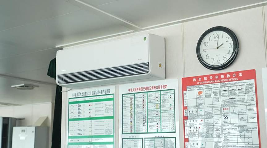 美的全面风空调挂机创新采用“空气动力学四件套”,以行业最大风口设计显著降低气流阻力,实现820m³/h巨量暖流快速输出。其跑车级格栅可均匀扩散气流,令全船舱温差小于1℃;搭配642空气悬架与降噪隔热导风翼,在实现细腻地暖风感的同时有效隔绝噪音,为科考团队营造舒适静谧的休憩环境。
