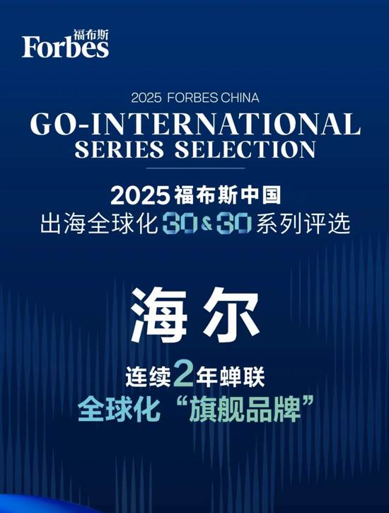 11月4日,“2025福布斯中国·出海全球化30&30系列评选”结果揭晓,海尔连续两年获评“旗舰品牌”。