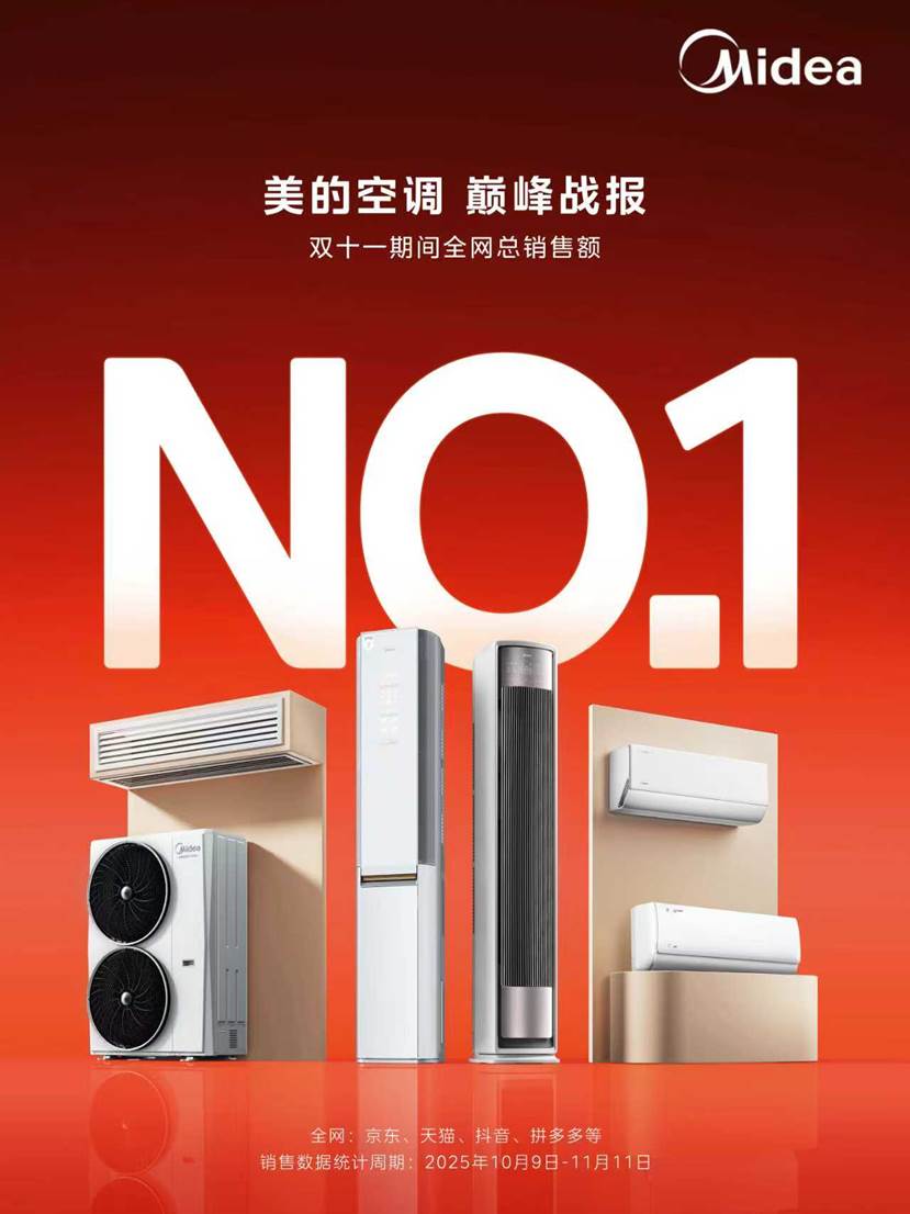 2025双11大战空调市场战报新鲜出炉!美的空调凭借硬核实力获得全网总销售额第一,在京东、天猫、抖音、拼多多等多个平台均登顶品牌榜第一。