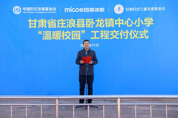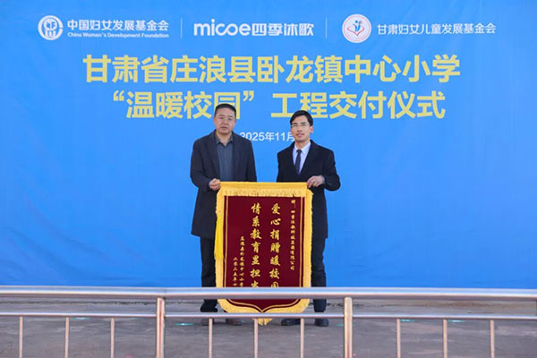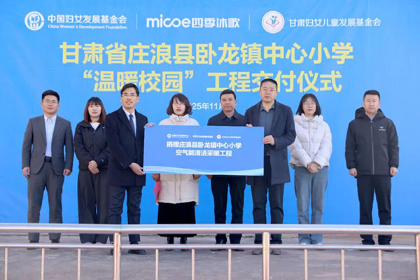 11月18日,甘肃省平凉市庄浪县卧龙镇中心小学暖意融融。由四季沐歌集团携手中国妇女发展基金会、甘肃妇女儿童发展基金会共同推进的“温暖校园”工程交付仪式在此隆重举行,这也标志着四季沐歌空气能清洁能源采暖系统在这里即将正式启用,为全体师生送上冬日持续温暖与健康守护。本次“温暖校园”工程落地甘肃两所学校,一所是平凉市庄浪县卧龙镇中心小学,另一所是武威市民勤县薛百镇五星完全小学。