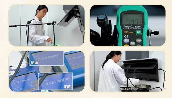 实验人员在烹饪区内亲自感受,确保在视觉上看不到油烟弥漫,嗅觉上闻不到呛人味道,脸部皮肤也感觉不到油烟的附着与灼热。
