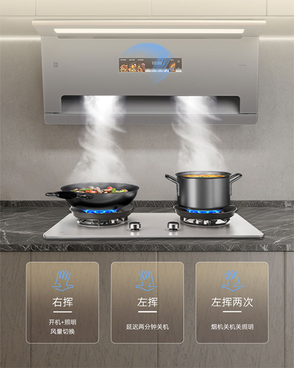 以先进科技赋能家居生活,樱花御风吸油烟机Q660M配备智能体感操控系统,无需触碰面板,只需轻轻挥手,即可完成吸油烟机的启停调档,风随心起,让烹饪的过程更加便捷与优雅。同时,零接触的操作方式也让面板始终保持洁净,避免油渍的沾染。