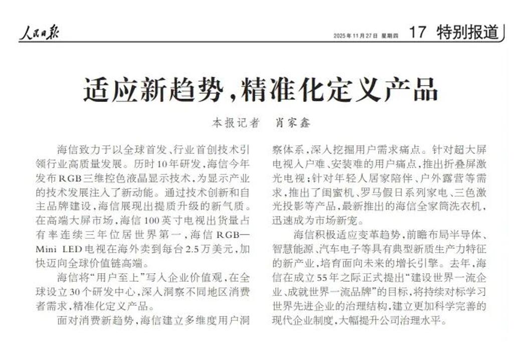 海信将“用户至上”写入企业价值观,在全球设立30个研发中心,深入洞察不同地区消费者需求,精准化定义产品。