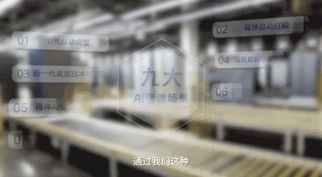 虚拟空间中的数字孪生工厂,实现冰箱生产全流程仿真优化;