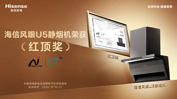 海信厨电产品海信风眼U5静烟机CXW-300-SU5凭借卓越的技术创新与出众性能,荣获“中国高端家电及消费电子红顶奖”提名奖。