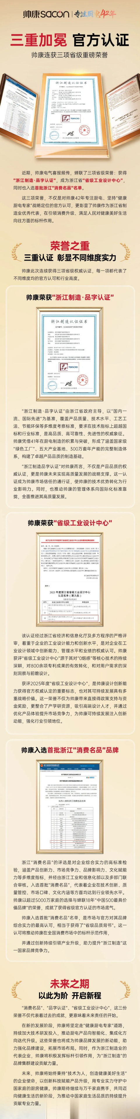 三重加冕,官方认证!帅康连获三项省级重磅荣誉