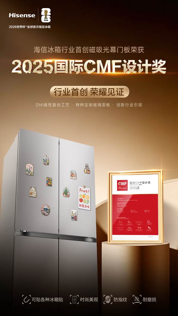 日前,全球设计领域权威奖项——2025国际CMF设计奖正式揭晓,海信冰箱全球首创的磁吸光幕门板凭借在材质、功能与情感体验的深度融合,成功斩获该奖项。这一荣誉不仅标志着中国家电设计实力获得国际认可,更彰显了作为2026世界杯™官方指定冰箱的海信始终以用户为中心的创新内核。