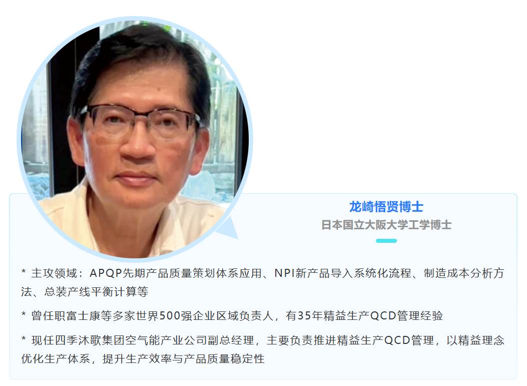 日本国立大阪大学工学博士龙崎悟贤,主攻APQP质量策划、NPI新产品导入流程、制造成本分析与产线平衡等,构建了覆盖供应链、生产控制与质量追溯的全流程精益制造体系,确保千万台级产能下的品质一致性与可靠性。