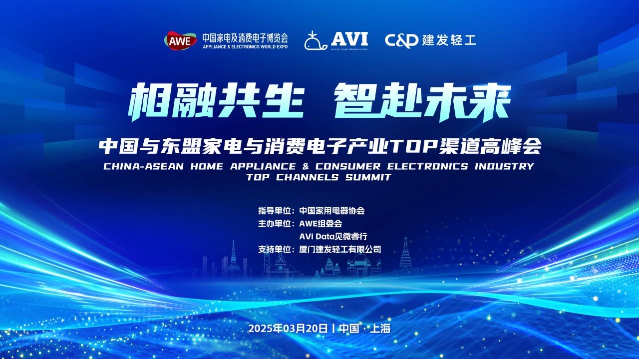 3月20日,由AVI Data 见微睿行与AWE联合主办的“中国与东盟家电与消费电子产业Top渠道高峰会”在上海隆重召开。本次会议以“相融共生智赴未来”为主题,汇聚了百余位来自东盟及中国的家电和消费电子行业领袖、渠道商及企业代表,共同探讨家电与消费电子产业在东南亚市场的合作空间与发展机遇。会议不仅彰显了东南亚作为中国企业全球化战略桥头堡的重要地位,也凸显了AVI Data等第三方专业机构在助力中国企业出海中的关键作用。