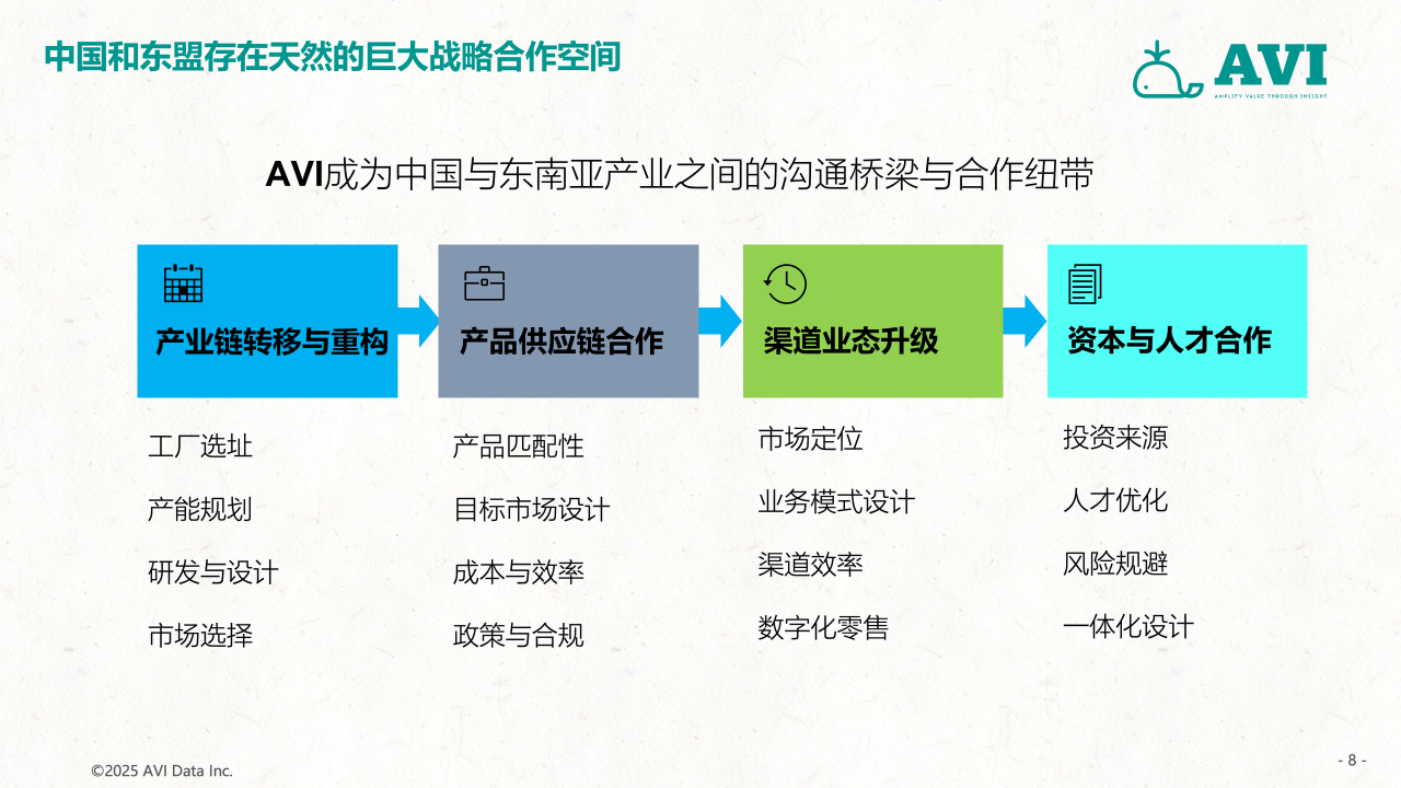 未来,随着“一带一路”倡议的深入推进和全球经济一体化进程的加快,中国家电和消费电子企业将迎来更多全球化机遇。东南亚市场不仅是规模庞大且增长迅速的重要区域,更是技术创新和品牌建设的关键战场。面对激烈的市场竞争和差异等挑战,中国企业需积极拥抱变化,加强技术研发,提升品牌影响力,并借助像AVI这样的专业数据服务机构的支持,实现更加稳健和可持续的发展。