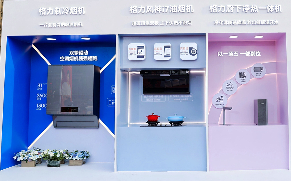 还有采用顶侧双吸三进烟口、超薄机身设计的格力风神i7系列油烟机,锁温性能和微压焖煮效果绝佳的铸铁珐琅锅,能够去除88种有害物质、最高出水速度可达1500G的厨下净热一体净水机,都是在为用户丰富厨房场景下的健康产品选择。