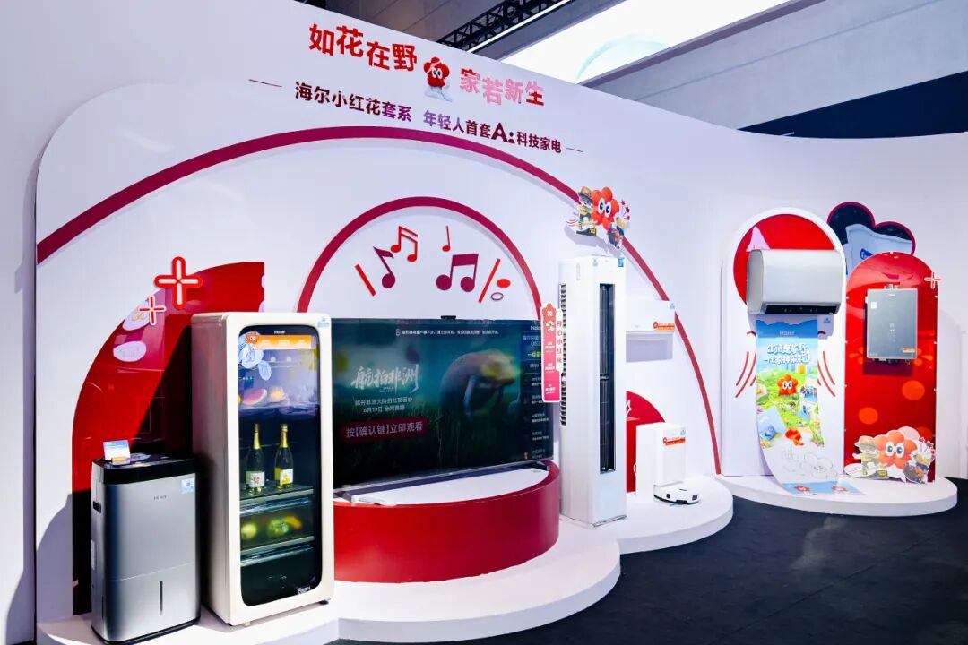 ●海尔小红花套系带来极简智控生活,基于AI科技实现美食一键即享,电视一唤即得,衣物一键智洗智烘。