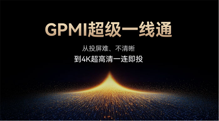 GPMI超级一线通是什么?简单说,它既是数据线,也是电源线,而只需要这一根线,我们就能告别过去HDMI线、数据线、电源线等多线交织的混乱布局。与传统HDMI或无线投屏需反复调试不同,GPMI实现“一连即投”,它让以前从“投屏难、不清晰”变为现在的“4K超高清,一连即投”。