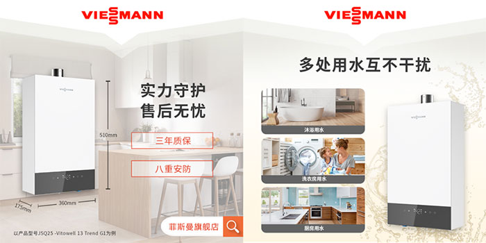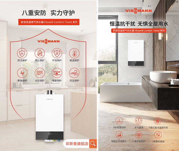 消费者在选购燃气能源家电时,除了对产品核心性能及价格的要求,使用过程中的安全性、节能性、以及售后服务保障更是影响购买决策的重要指标。菲斯曼此次推出的Vitowell Comfort Trend大升数和室外机型燃热新品,不仅在精准控温、节能静音等方面延续了德国精工始终如一的高水准,更用八重安全防护、机械与电加热双重防冻、镀镍防腐抗垢高效换热水箱,下鼓式直流变频风机等技术和高端配置,确保产品长久耐用,并在各种恶劣天气下仍稳定运行,为家庭提供安心可靠的热水保障。同时,菲斯曼全天候24小时的专业高效安装与售后服务体系,更加让用户买的放心,用的安心。