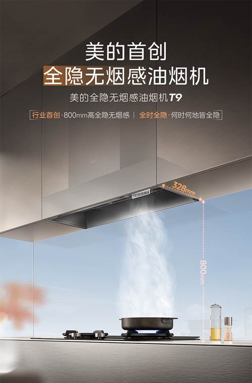 美的洞悉行业趋势和用户需求,首创全隐无烟感油烟机T9,从形态设计、净烟效果、智能化操控等多维度进行破局创新,以颠覆式形态创新,重构厨房烹饪新体验。