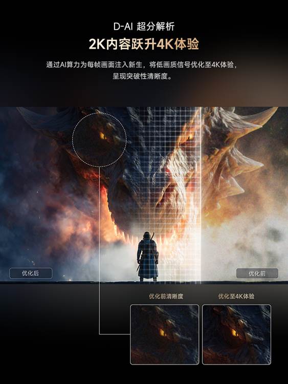 3. AI 超分解析:依托强大 AI 算力,对低画质信号进行智能重构,将其优化至 4K 级别,带来突破性的清晰度提升;
