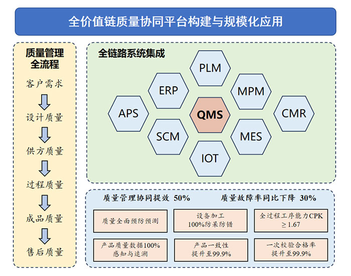 最终,各项能力被集成于一个贯通全价值链的质量协同平台。该平台以质量管理系统为核心,无缝连接企业内部研发、生产、供应链及售后服务等环节,并延伸至上下游合作伙伴,实现了质量信息的实时共享与业务的协同优化,全面增强了产业链的质量管控合力与整体韧性。