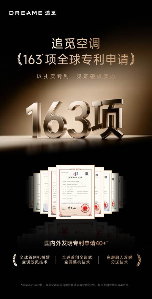 这163项专利,是追觅在舒适科技领域的答卷——每一次创新,都让空调更懂人所想,润物无声。