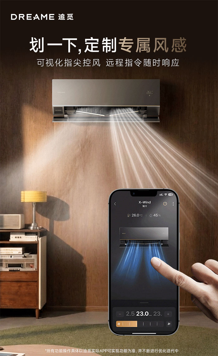 在结构层面,135°可调康达翼与微孔导风矩阵实现气流自然扩散,解决直吹痛点;低噪风道与高效换热系统协同达成16dB(A)静音运行与APF5.48超一级能效。在交互层面,独创的APP可视化拖拽风向控制,让126°广角送风与左右分区控风变得直观易用,真正实现“一屋两风,各得其所”。