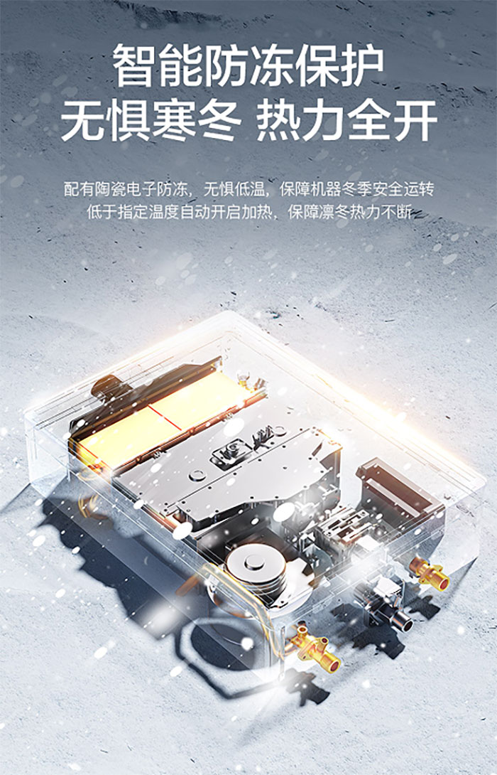 针对低温环境,樱花燃气热水器E508A配有陶瓷电子防冻保护功能。当环境温度低于设定阈值时,系统自动启动加热程序,避免管路因低温冻裂,确保冬季热力供应不间断,全方位守护设备安全与热水供应。