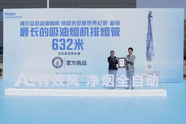 行业唯一!海尔有效风烟机挑战632米超长排烟创造吉尼斯世界纪录称号,以极致技术攻克中式厨房的排烟难题。