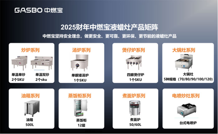 面对市面液蜡灶产品品质参差不齐、安全与性能难以兼顾的痛点,中燃宝全新液蜡灶产品矩阵,也在本次发布会重磅登场,以“更安全、更可靠、更环保、更节能”为核心标准,为工商业用户提供一站式解决方案。从炒炉、汤炉到煲仔炉、大锅灶,全品类覆盖餐饮全场景需求。六大核心升级重构商用厨房体验,加厚SUS201不锈钢机身坚固耐用,升温更快、火力更猛,搭配节能省油技术,大幅降低运营成本;模块化设计让核心部件易更换,操作简单省心,更适配工商业用户的高效生产节奏。中燃宝用全链路的品质把控,让每一位工商业用户都能用上安心好用的商用厨电,为烟火升腾的后厨筑牢坚实防线。