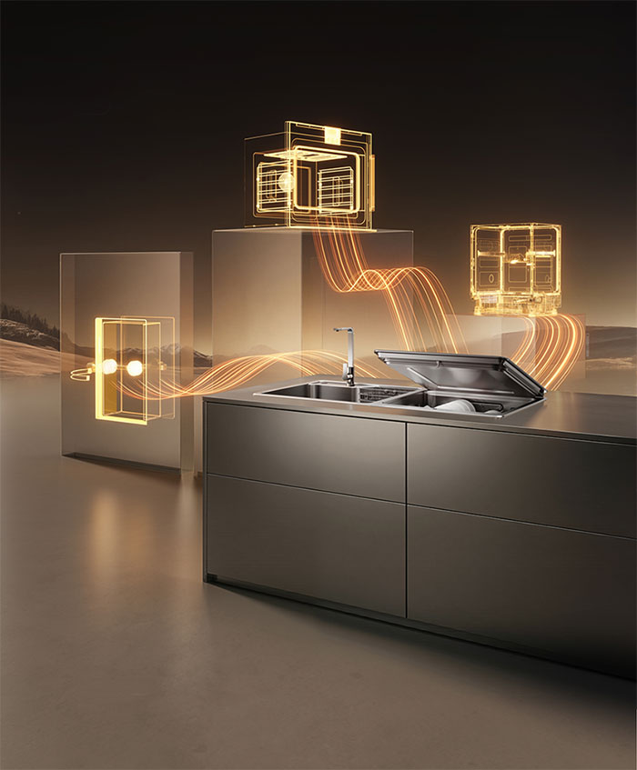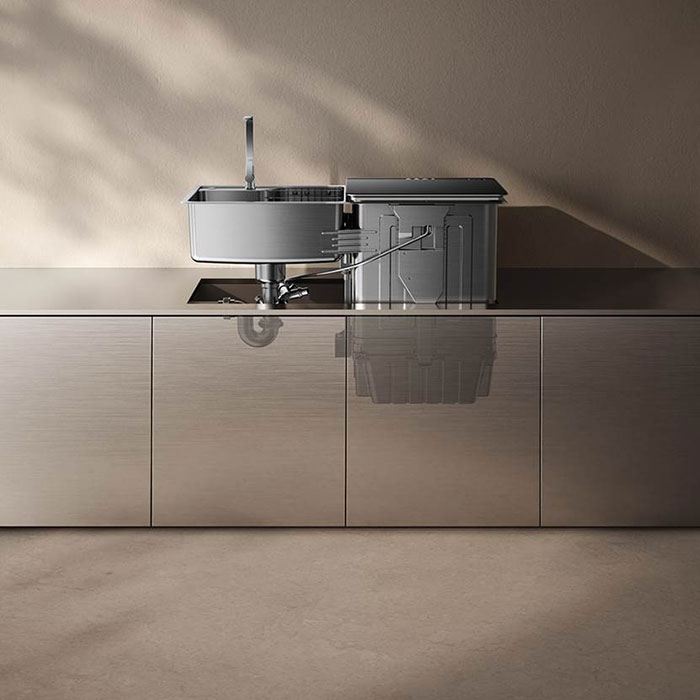 首先是集成创新,重构洗碗场景逻辑。 YU10水槽洗碗机的“水槽+洗碗机+除菌碗柜”三合一设计,并非机械的功能叠加,而是基于用户真实生活动线的深度场景融合。它彻底消除了传统洗碗流程中的多个“断点”:水槽原位安装,无需额外寻找空间;洗净烘干后直接进入存储模式,无需取出沥干或二次转移。这真正实现了“一餐一洗,即洗即存”,将离散、费时费力的劳动流程,整合为一步到位的流畅体验,重构了餐后清洁的场景逻辑。