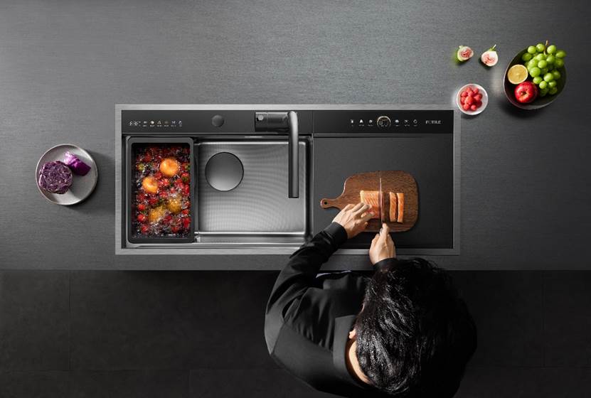 在传统厨房中,清洗工作需要手工完成;当洗碗机被发明后,稍微减轻了一些双手的负担,但传统洗碗机仍有明显的不足之处——开关门、拿取餐具仍然需要弯腰操作。在春节这种厨房工作强度尤其高的时段内,重复地弯腰劳作,无疑会加重身体负担。而以方太新一代洗碗机为代表的水槽式设计,则没有这种问题。