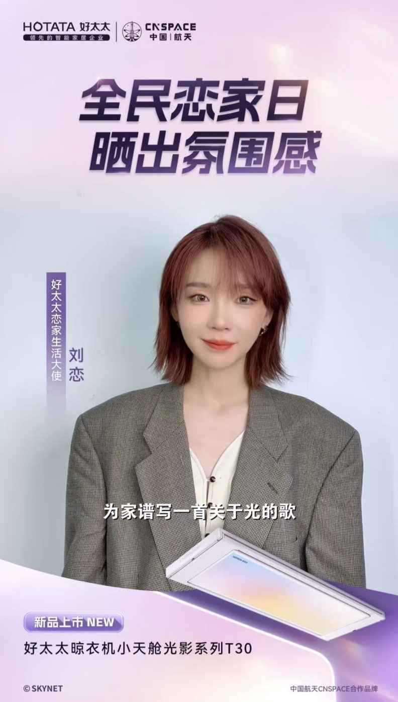 好太太精准捕捉这一趋势,智能晾衣机小天舱光影系列T30此前1元预约活动吸引众多用户积极参与,印证了当前用户的真实需求。因此,好太太顺势启动光影小天舱T30预售,同步官宣刘恋为好太太恋家生活大使兼本次光影小天舱新品推荐官,联动全域渠道开启集中引流。好太太通过“预售专属福利+明星深度互动+全渠道曝光”三大核心动作,回应年轻消费者对品质生活与情感体验的双重期待,以科技赋能阳台场景焕新,助力每一个“悦己空间”的真正落地。