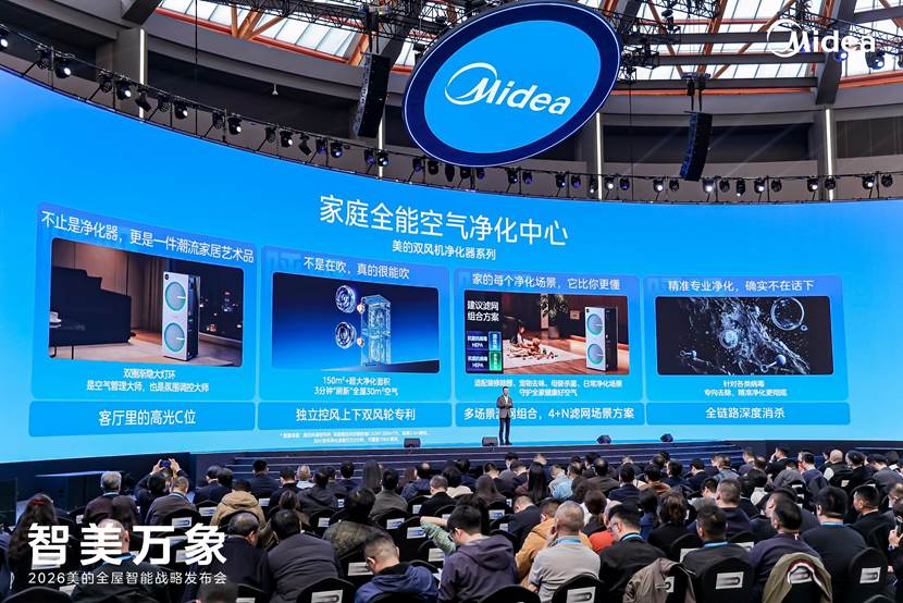 3月10日,以“智美万象”为主题的美的2026全屋智能战略发布会在上海举行。围绕现代家庭在空气管理、饮食烹饪等生活核心场景的多个痛点,美的小家电现场发布了美的双风机净化器U8等多款重磅新品,为追求健康品质生活的家庭提供专业守护。