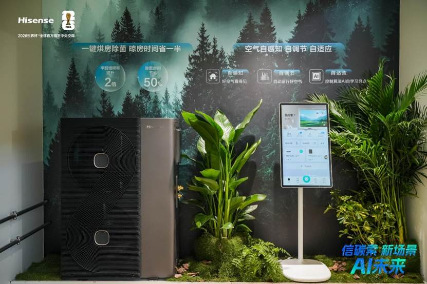作为全屋智慧空气领域的引领者,海信中央空调以“信碳索 新场景 AI未来”为主题,携2026世界杯™定制产品——Ai家II PRO,以及ThinkAir2.0全屋健康智慧生态系统、全域高效热泵AI冷暖舒适系统、全场景绿色新能源解决方案等“黑科技”重磅亮相,向全球展现中国品牌在智慧空气领域的创新成果。
