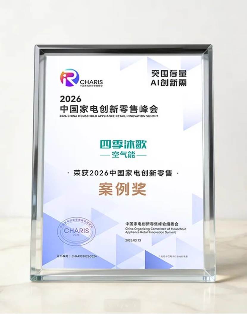此次斩获AWE“2026中国家电创新零售优秀案例奖”,是对四季沐歌创新实践的充分肯定,更是全新的发展起点。未来,四季沐歌将继续深耕极地科技民用转化,持续完善场景化销售体系,不断强化技术创新、体验升级与模式突破,将经过南北极极端环境考验的好产品与优质服务带入千家万户,以行业标杆之力推动空气能产业高质量发展,为家庭绿色舒适生活持续赋能。