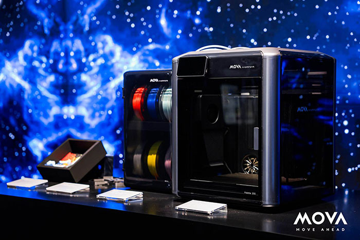 如果说清洁电器是MOVA起步的基本盘,那么如今其技术野心早已超越地面。此次展会上,全球首款内置12喷嘴切换系统的3D打印机Palette 300正式亮相,凭借MOVA首创的OmniElement™全自动喷嘴切换系统,实现12种材料一盘直出、36色灵活切换,材料浪费减少90%。这款打印机搭载4颗AI摄像头与50+传感器,可对打印过程进行全程监测与智能纠错,大幅降低损耗。