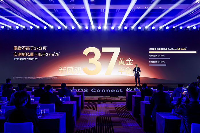 实现这一标准的关键,在于双方联合研发的行业首创Dual Turbo双新风系统。在将运行噪音控制在37分贝的前提下,新风量可达到51m³/h,免扩孔状态下更可达80m³/h。