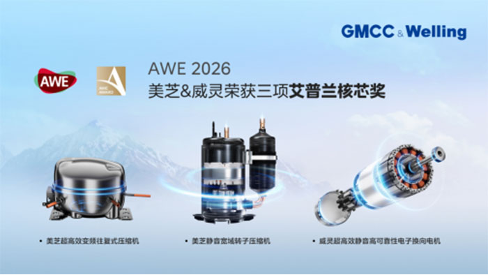 【中国·上海 】2026年3月13日,备受关注的家电与消费电子行业年度最高荣誉——AWE 2026“艾普兰奖核芯奖”在上海圆满落下帷幕。全球领先的暖通家电核心部件供应商GMCC美芝、Welling威灵凭借美芝静音宽域转子压缩机、美芝超高效变频往复式压缩机,以及威灵超高效静音高可靠性电子换向电机,成功斩获三项大奖。值得一提的是,这已经是美芝、威灵连续十余载荣获这一荣誉,美芝、威灵在暖通家电领域的技术、研发、制造能力再次得到了行业认可。