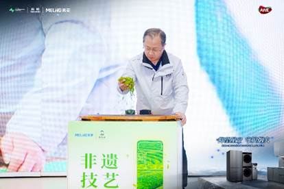 产品发布后,谢裕大高级茶艺师、评茶员安如老师登台,用美菱AI冰吧机制备的鲜活水冲泡谢裕大新品“每天一杯”一级黄山毛峰。精准控温的水流如山泉浸润,茶汤清澈透亮、兰香隐现。马进等领导嘉宾现场品鉴,赞叹“非遗锁住茶香,科技唤醒鲜活,二者缺一不可”。