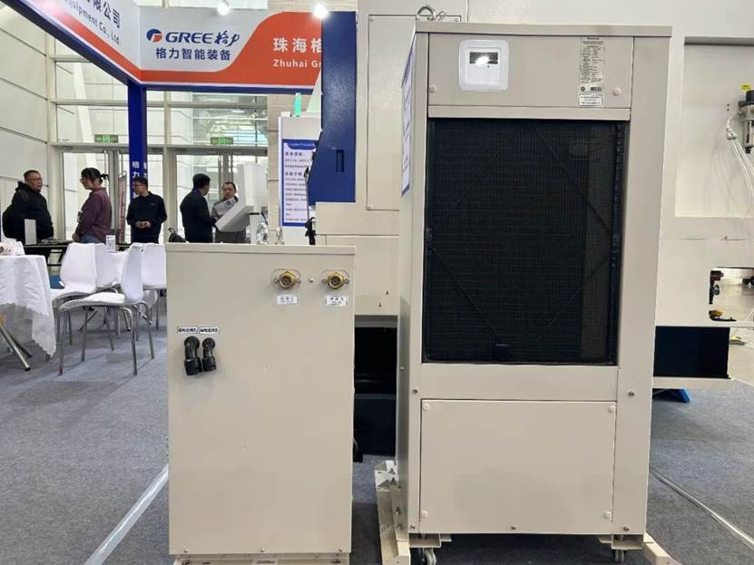 作为机床精密加工的“温控卫士”,格力精密变频油冷机/水冷机同步亮相。它深度集成了格力在制冷领域沉淀数十年的核心黑科技——压缩机与控制系统均为格力完全自主研发,从“心脏”到“大脑”实现了全链条自主可控。它专为数控机床、电主轴、液压系统等关键部件设计,依托自研变频压缩机与智能控制系统,实现了±0.1℃的高精度温控能力,有效抑制设备热变形,保障工件尺寸一致性与设备长期稳定运行。它能根据设备负载与环境温度智能调节制冷功率,相比传统定频机型,节能效率大幅提升,同时大幅降低运行噪音与能耗,让车间生产更绿色。