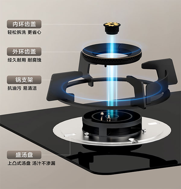 做完饭,最让人困扰的是收拾灶台。汤汁溢出、油点飞溅,缝隙里的污垢,擦也擦不干净,抠又抠不出来。樱花燃气灶S301G通过全方位防溢可拆卸的设计解决这一烦恼:采用上凸式汤盘有效避免汤汁的渗漏,时刻保持面板的干净;炉头轻松可拆卸,污渍清理更加便捷;外环齿盖耐腐蚀,经久耐用;锅支架抗油污,擦拭方便。樱花燃气灶S301G以精巧的细节让厨房整洁不费力,烹饪时刻变得愉快且舒心,也让生活的品质随之提升。