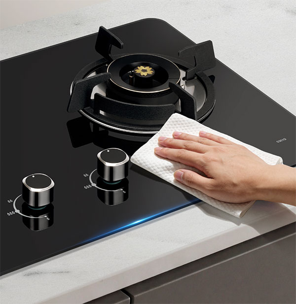 干净整洁的环境不仅提升了使用体验,也营造出舒适温馨的家居氛围。樱花燃气灶S301G采用一体式黑晶玻璃面板,将美观与易洁完美结合。平整光滑的面板只需轻轻一擦,光泽便恢复如新;黑晶玻璃的材质更具抗划耐磨的品质,其呈现出的高级质感,也让厨房整体风格更加统一与精美。