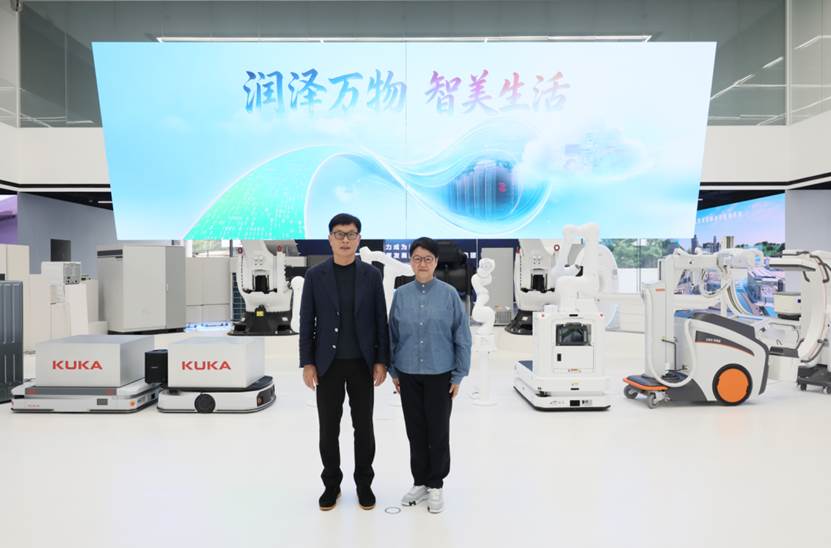 润泽集团一行首先参观美的总部 08 展厅,全面了解美的集团多元化产业布局、数字化转型成果、绿色低碳发展战略及在智慧建筑、智慧物流等领域的核心能力。