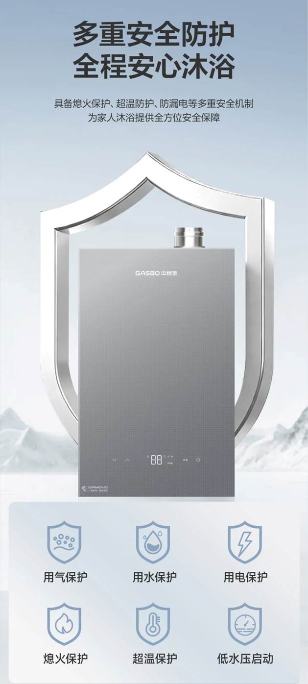 很多人用热水器时,总免不了各种担心,燃气会不会泄漏、水温会不会突然飙升、水压不稳会不会出问题、用电有没有隐患,尤其是家里有老人小孩,更是时刻揪着心。16L5把安全刻进每一处细节,用气保护、用水保护、用电保护、熄火保护、超温保护、低水压启动,每一项防护都精准击中沐浴安全痛点,给家人最踏实的日常守护。